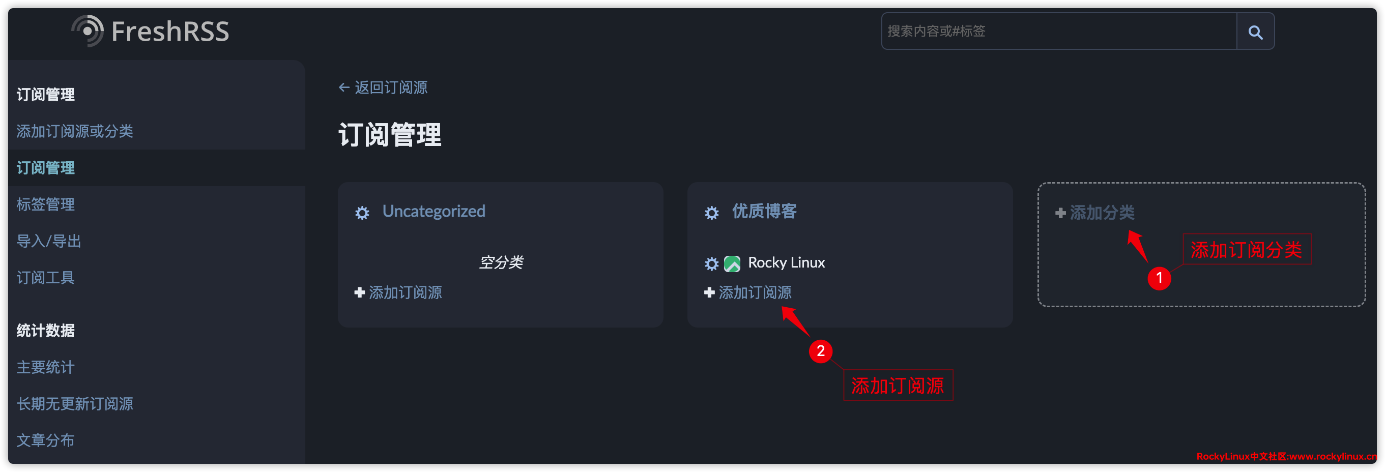 在这里可以添加分类,然后基于添加的分类再添加订阅源。