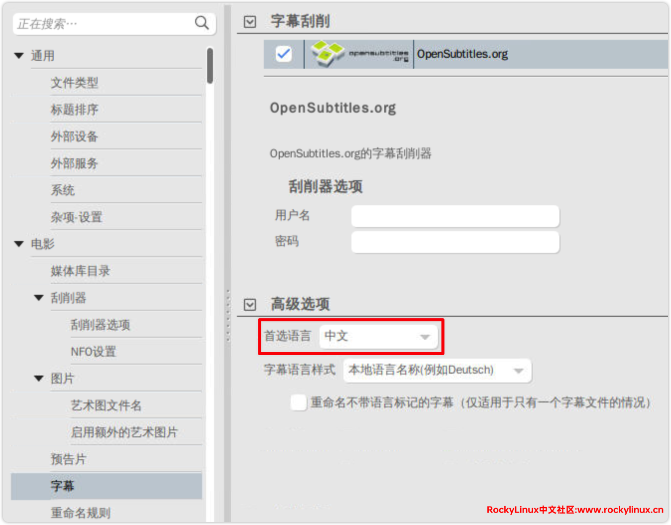 字幕刮削设置