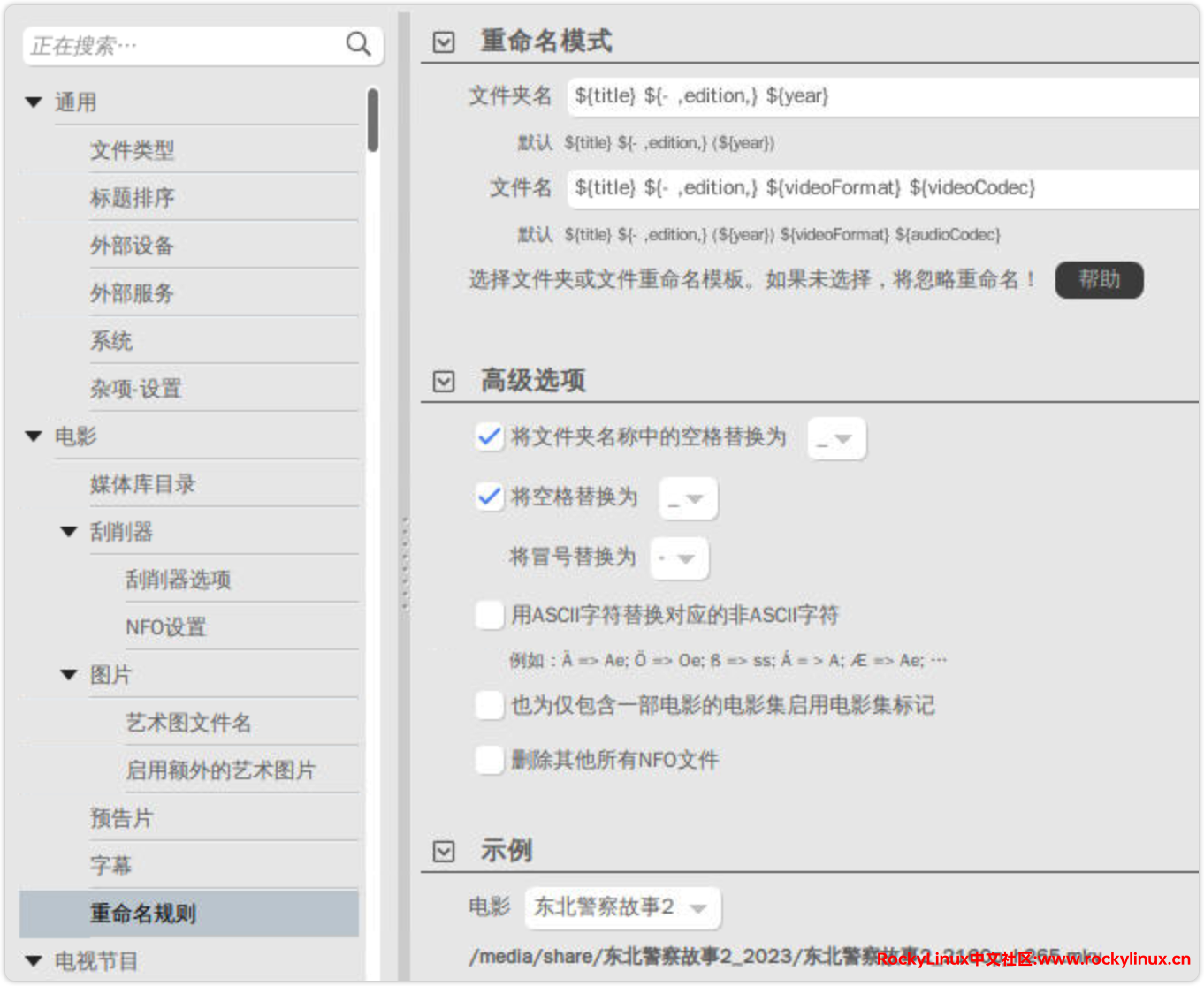灵活的文件和文件夹命名规则:用户可以根据个人喜好设置命名规则,确保媒体文件和文件夹结构的一致性。