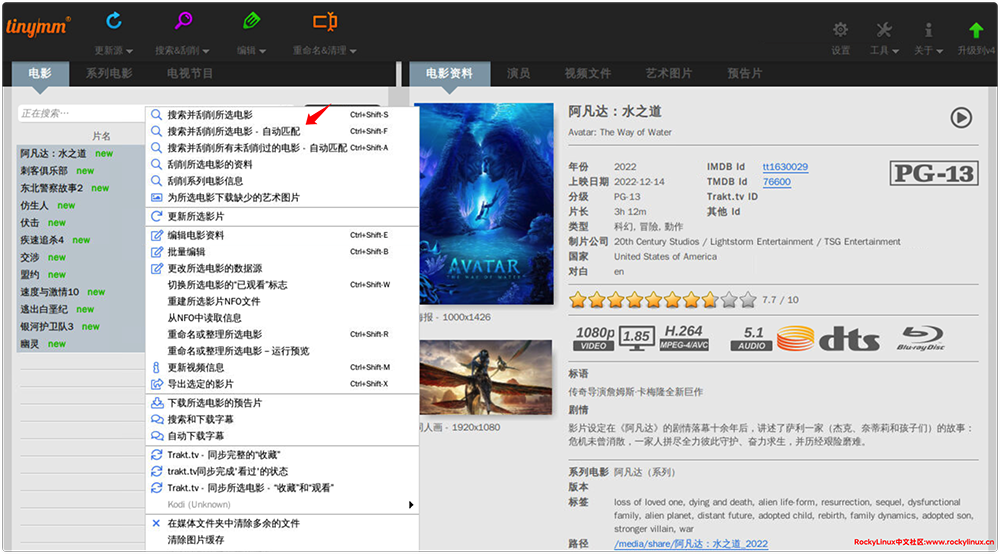 自动抓取元数据:TMM 可以从各种在线数据库(如 IMDb、TheMovieDB 等)自动获取电影和电视节目的元数据和海报。