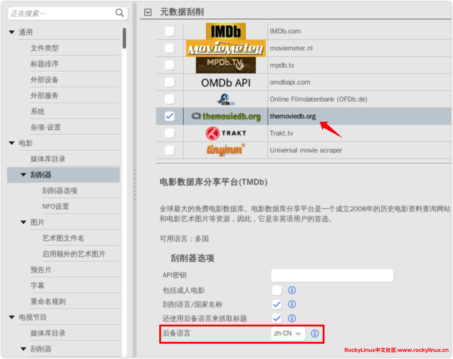 选择刮削器与后备语言。
