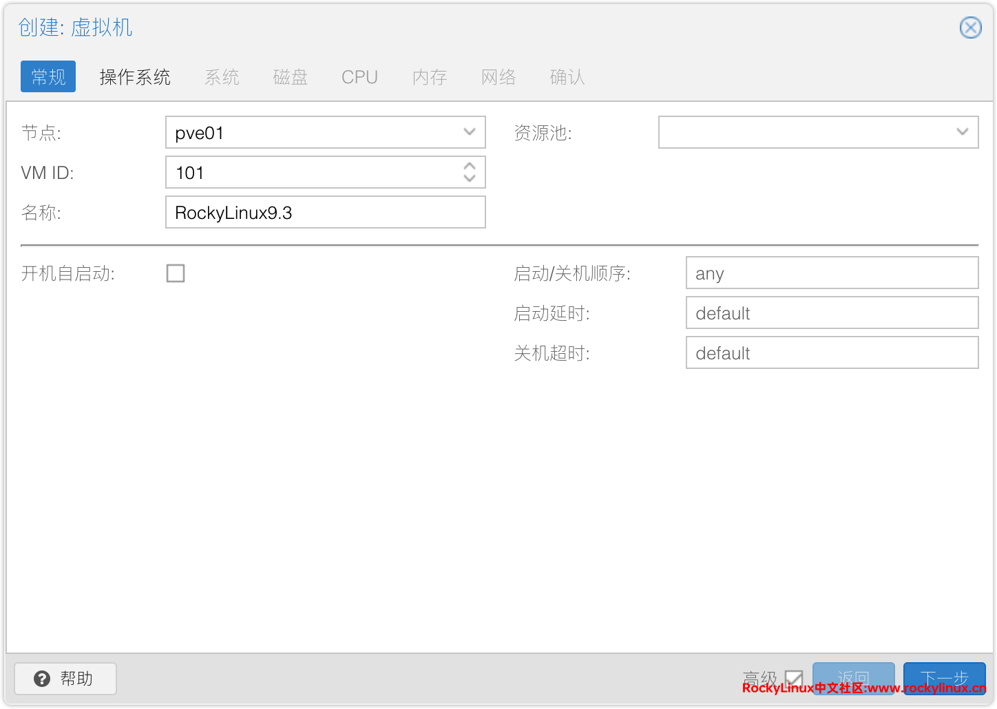 1) 虚拟机名称、VMID、所在节点设置。