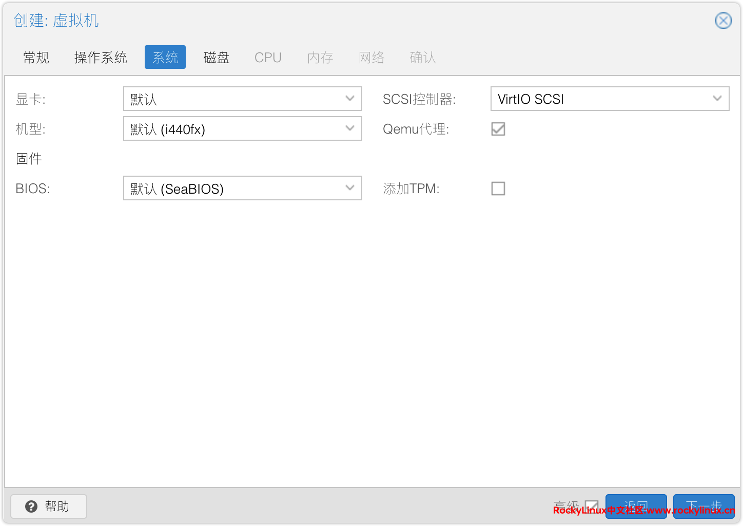 3) 启用 Qemu Agent,SCSI 控制器:VirtIO SCSI 。