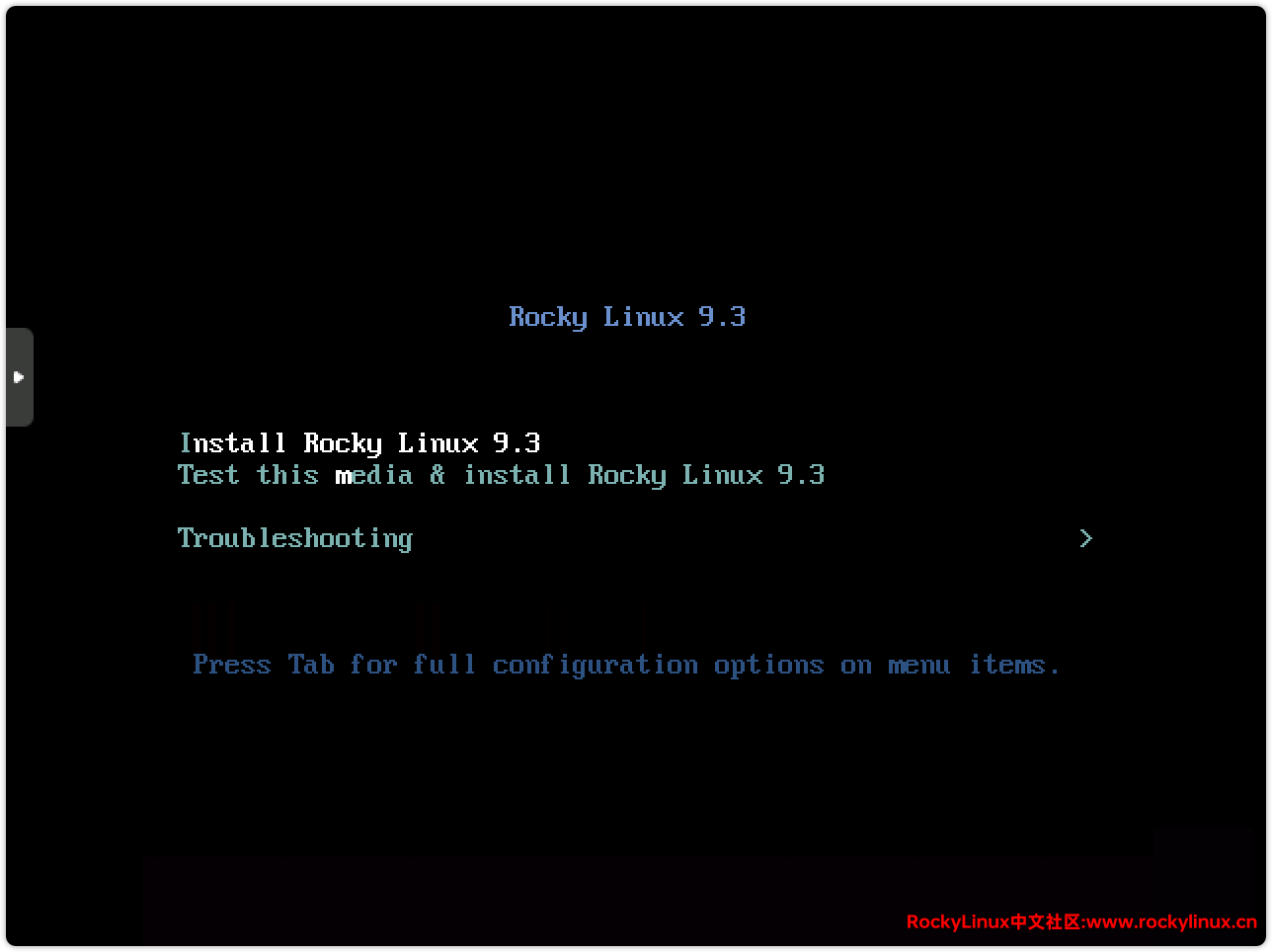 9) 启动虚拟机,开始安装 Rocky Linux,选择:Install Rocky Linux 9.3。