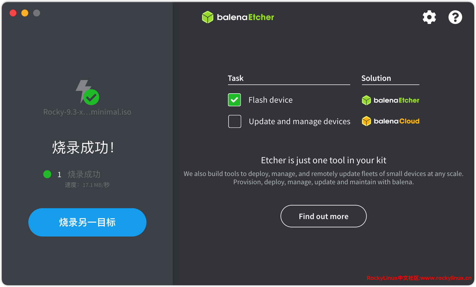 正常 U 盘刻录到这里就完成了,您可以将 U 盘插到需要安装 Rocky Linux 9.3 的物理机,进行后续的安装啦。