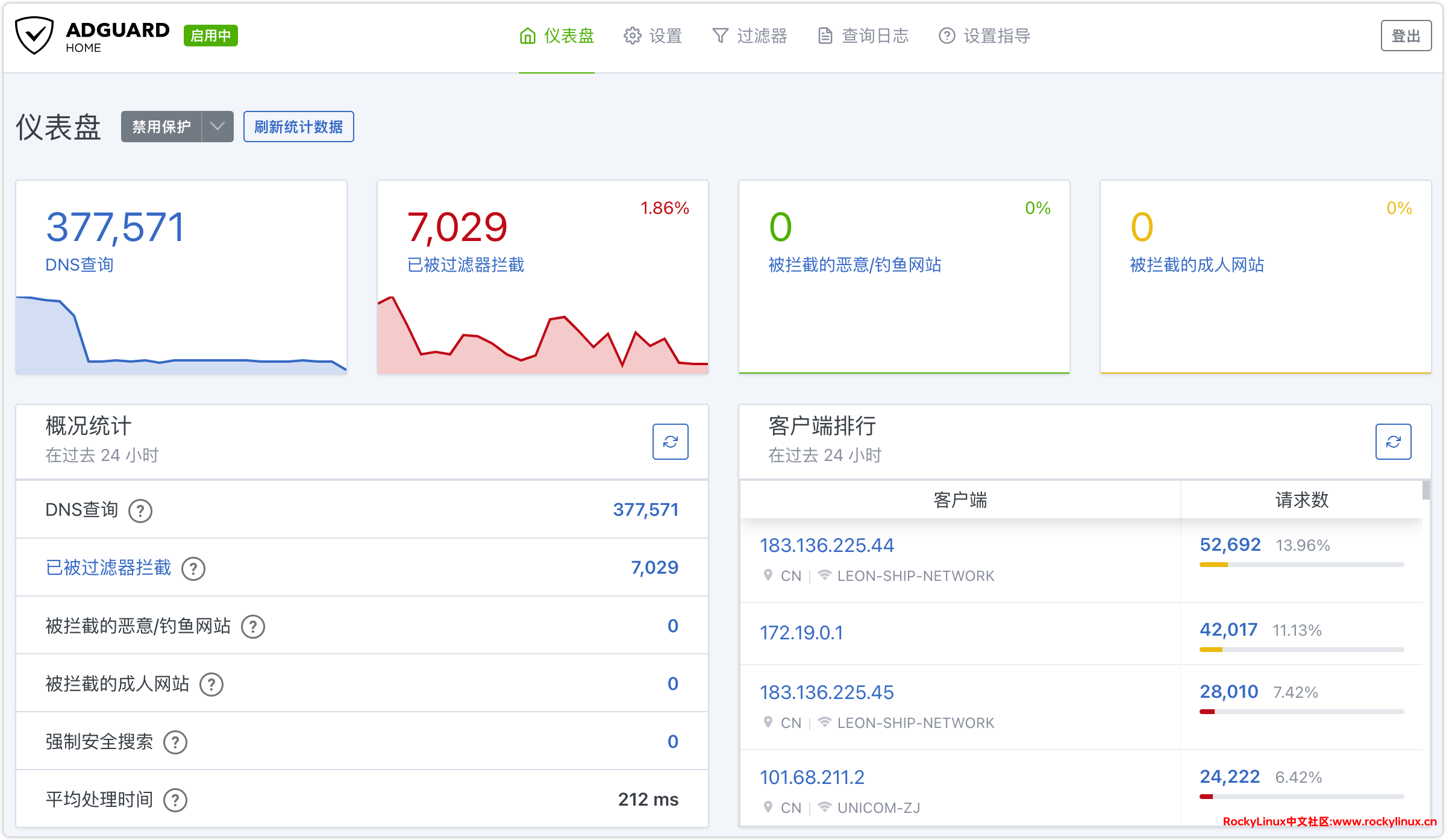 详细的统计数据: AdGuard Home 可以记录详细的统计数据,您可以查看哪些广告被拦截,哪些网站被访问,从而更好地理解您的网络环境。