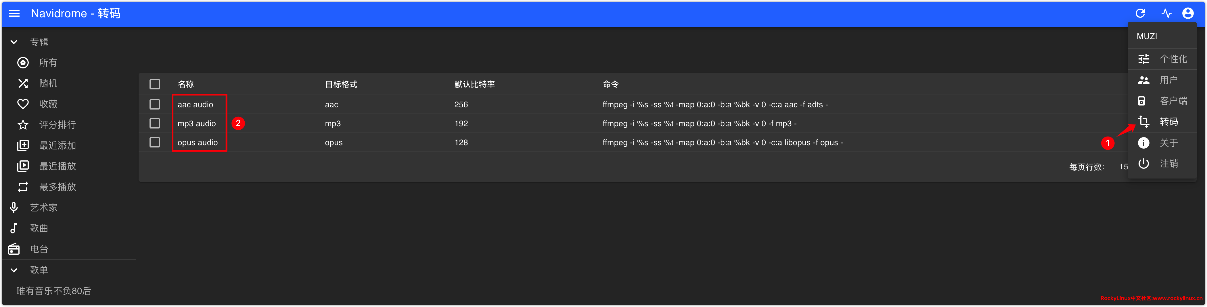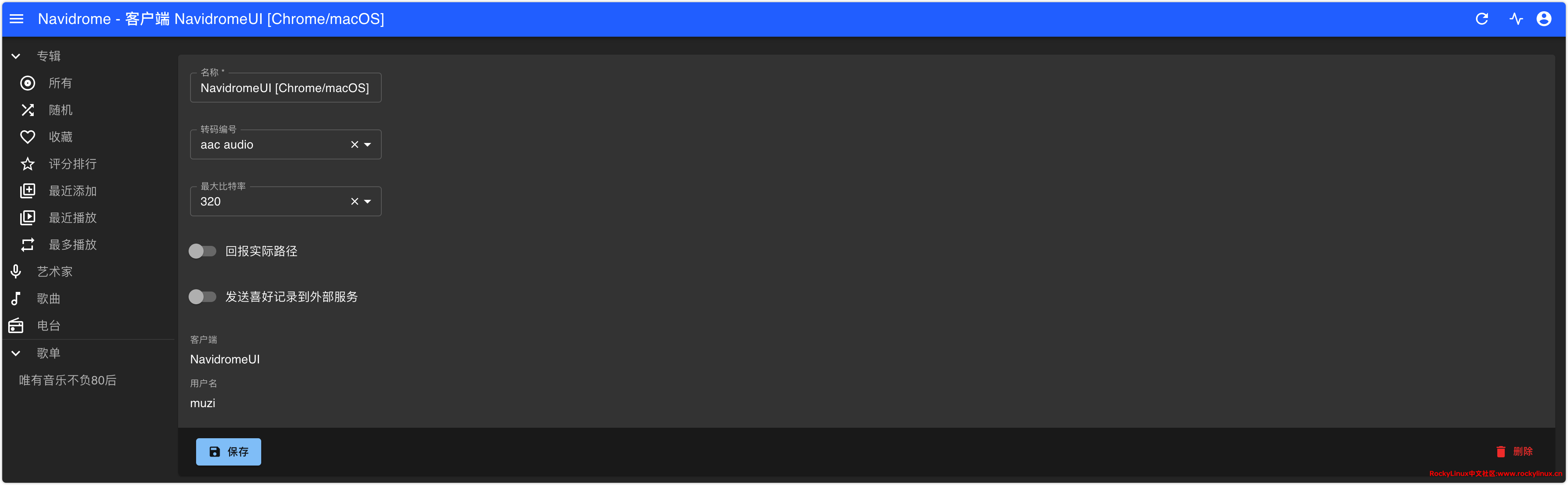 如下图所示,选择指定的客户端进行转码设置,这里以设置 Navidrome Web 播放器为例。