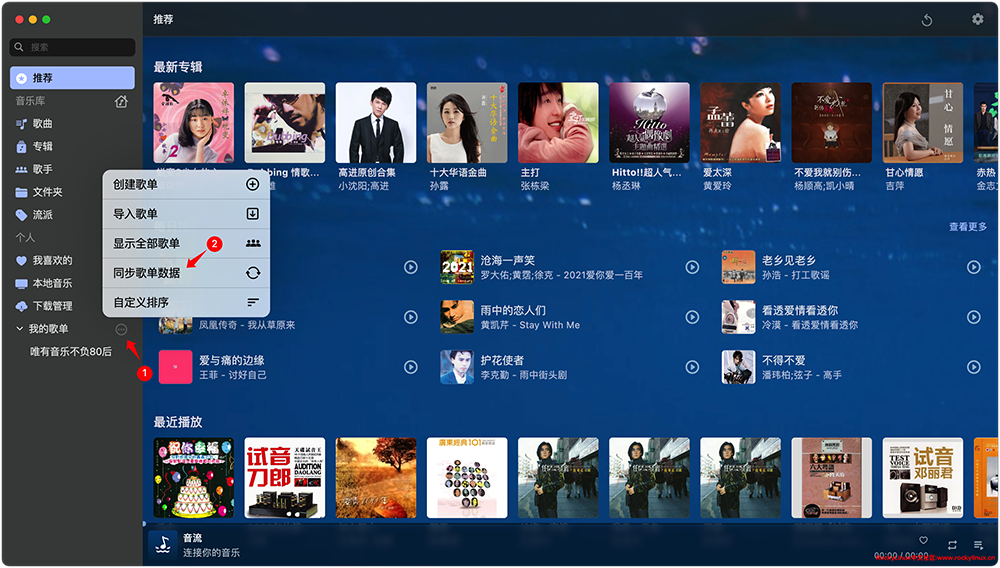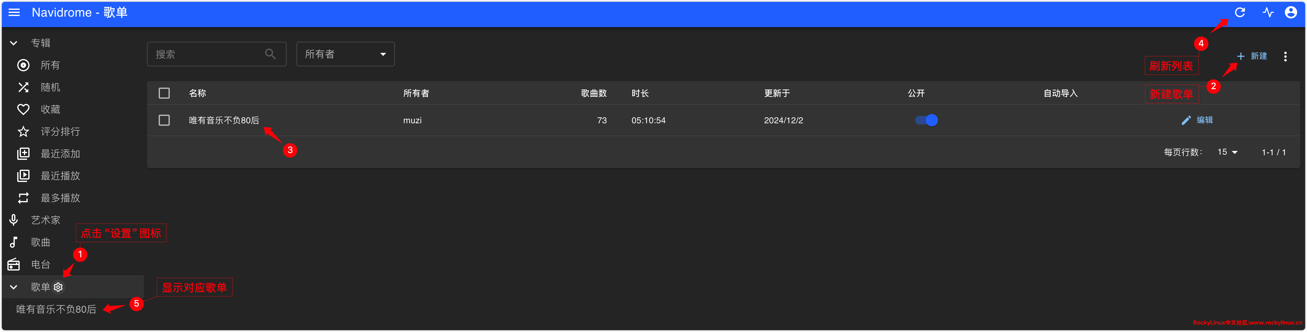 刷新歌单:可以将在 Navidrome Web 界面创建歌单同步过来。