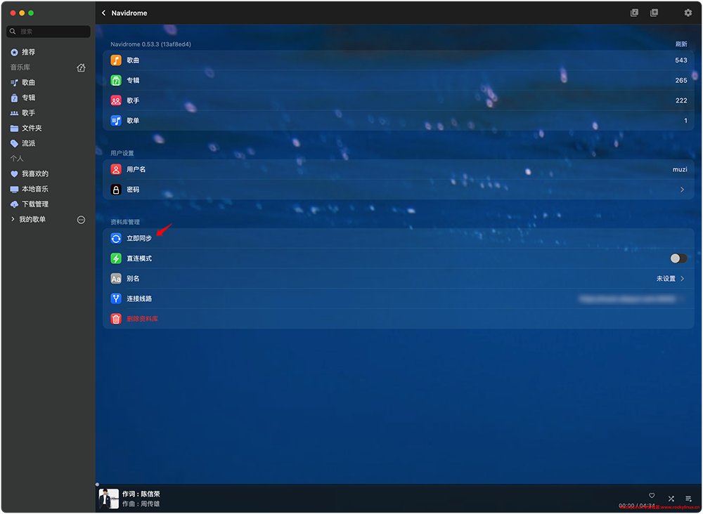 如果您发现音流 APP 中存在音乐搜索不到,但是 Navidrome 中确实存在此音乐,大概率是两边的数据不同步,这时候可以点击“设置” -- “资源库” -- “立即同步” 即可。