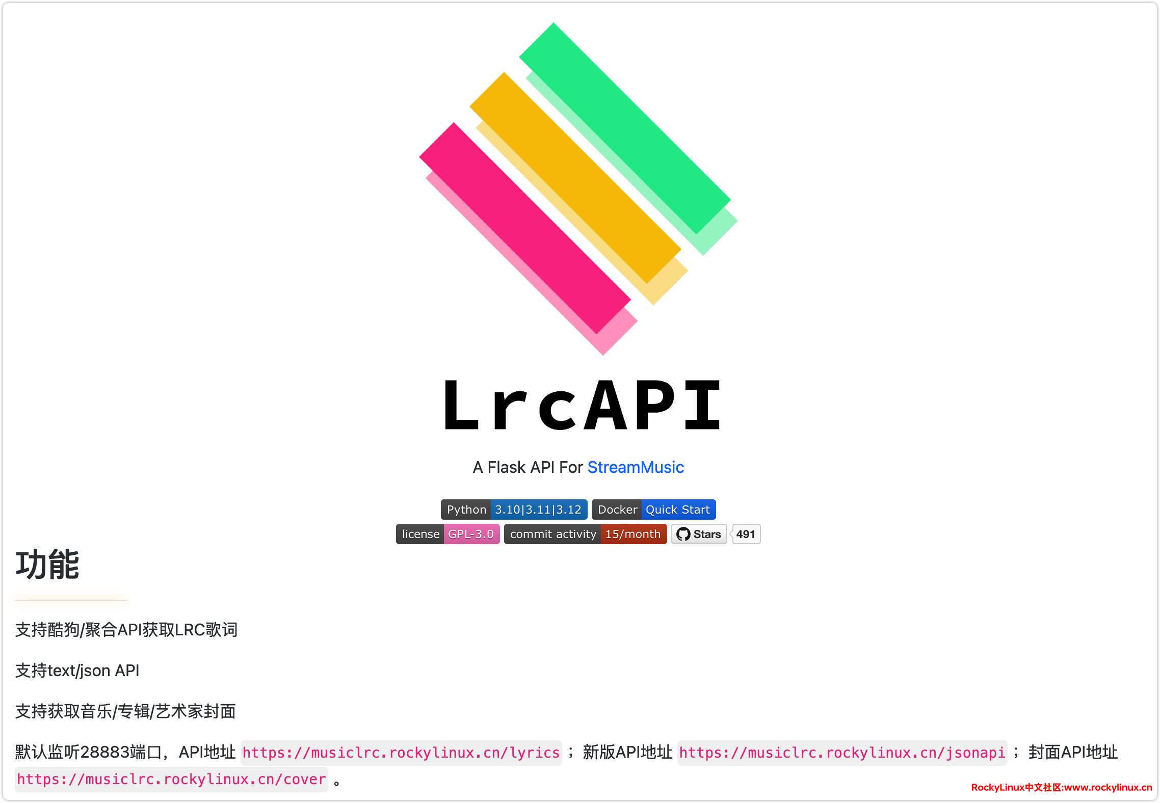 API 地址:https://musiclrc.rockylinux.cn/lyrics