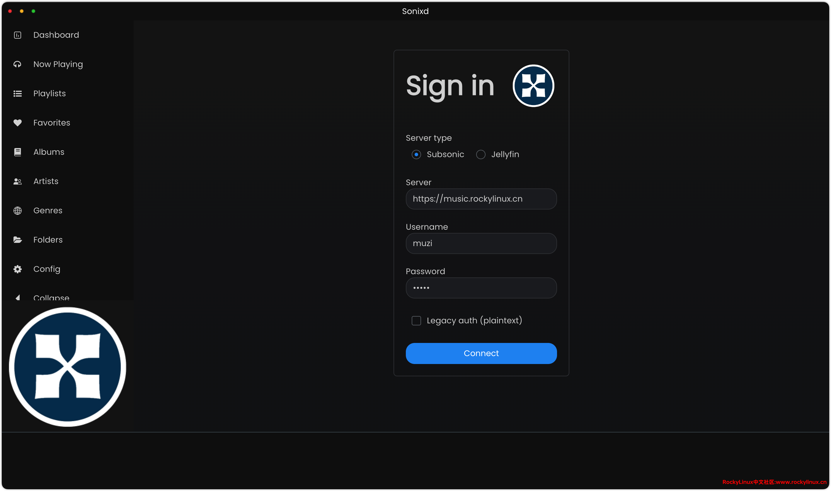 输入 Server 地址,以及登录 Navidrome 用户名、密码,点击 “Connect” 登录。