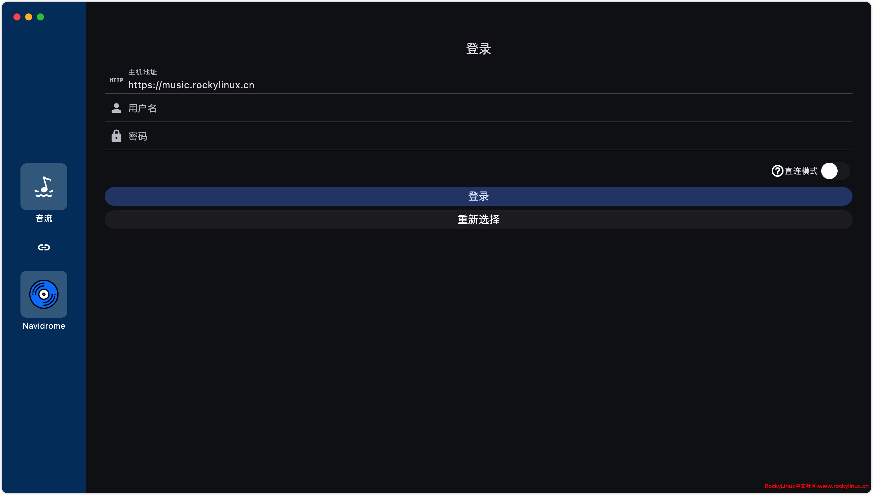 输入 Navidrome 主机地址,以及登录用户名、密码,点击“登录”。