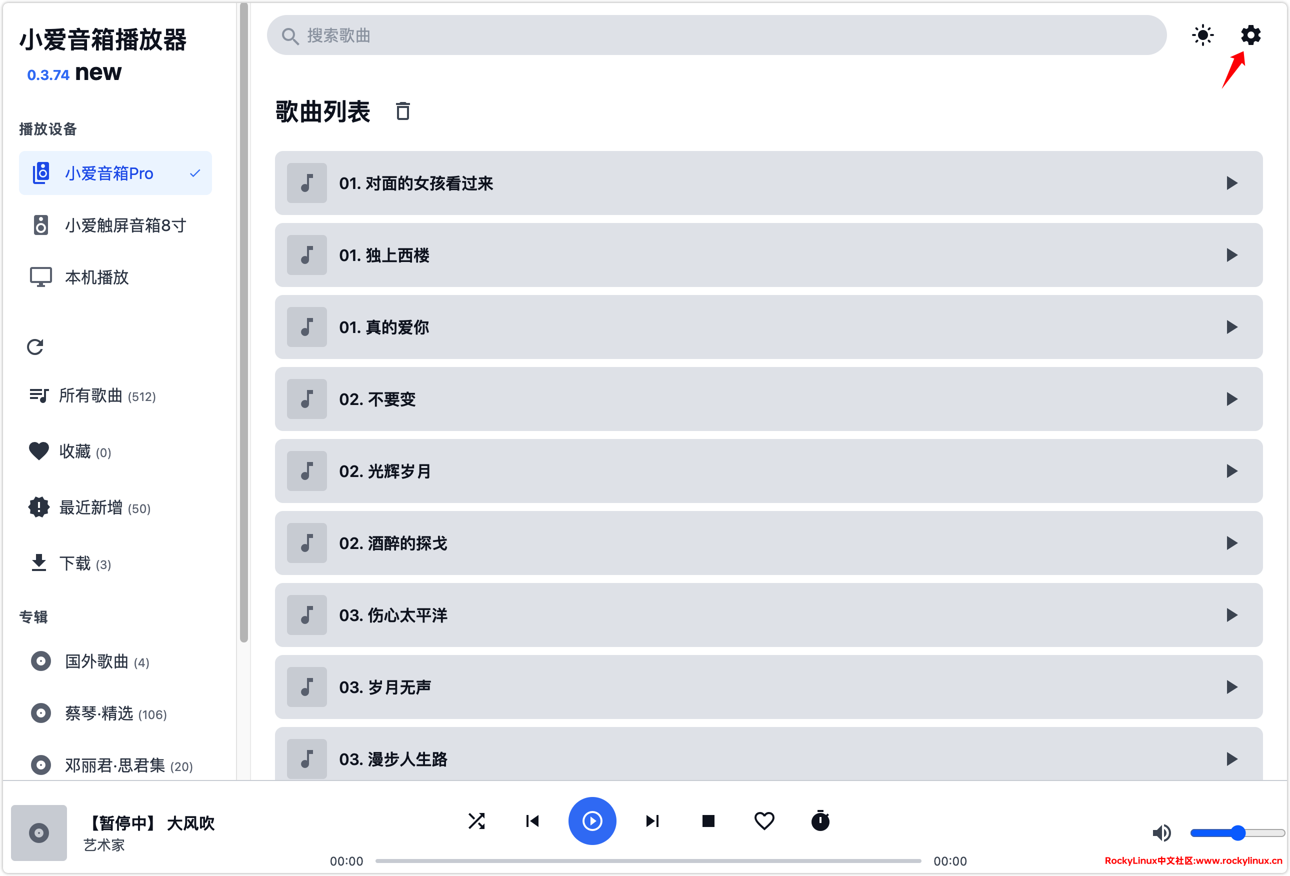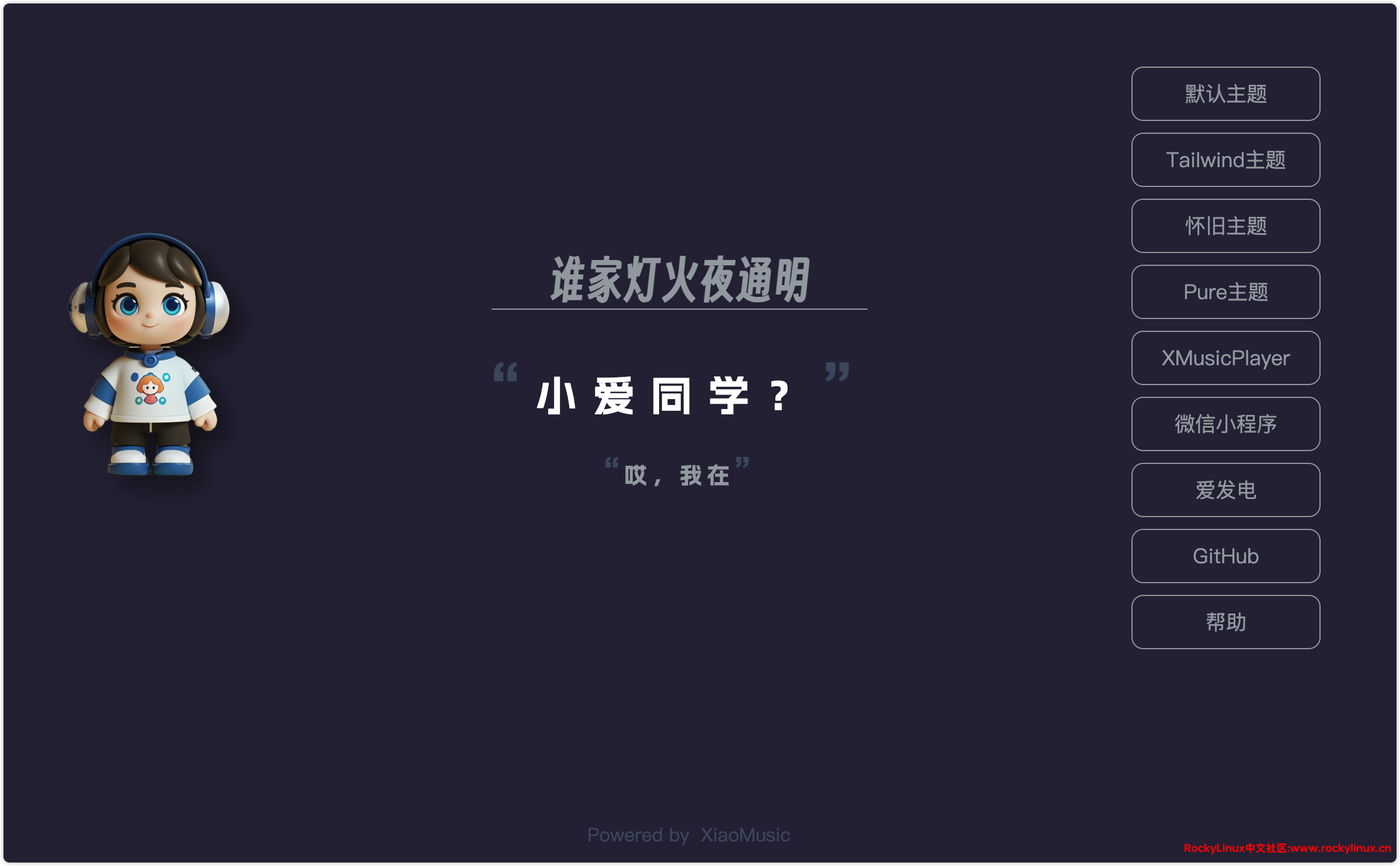 打开 https://xiaomusic.rockylinux.cn (替换成您自己的域名),点击“Tailwind 主题”。