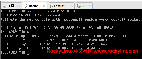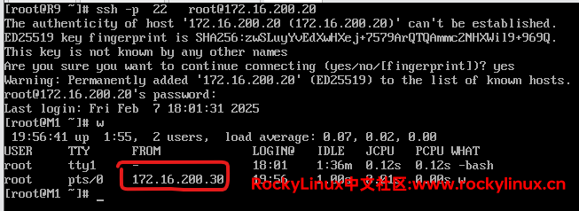 可以在 RockyLinux 9.5 上通过 SSH 远程登录 172.16.200.20: