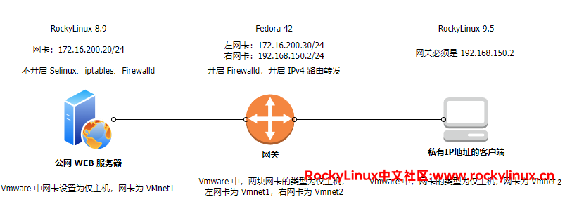 将网关的 sshd 服务关闭,当公网设备通过 ssh -p 22 [email protected] 时,,可以通过 DNAT 技术将数据包转给 RockyLinux 9.5,即最终响应的是具有私有 IP 地址的这台设备。