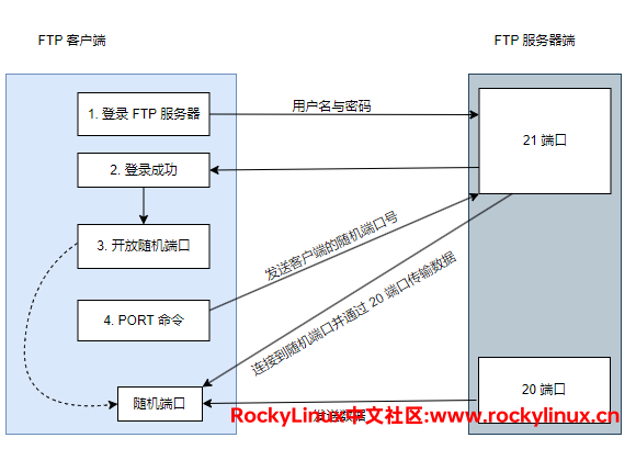 FTP 的主动模式如下图所示: