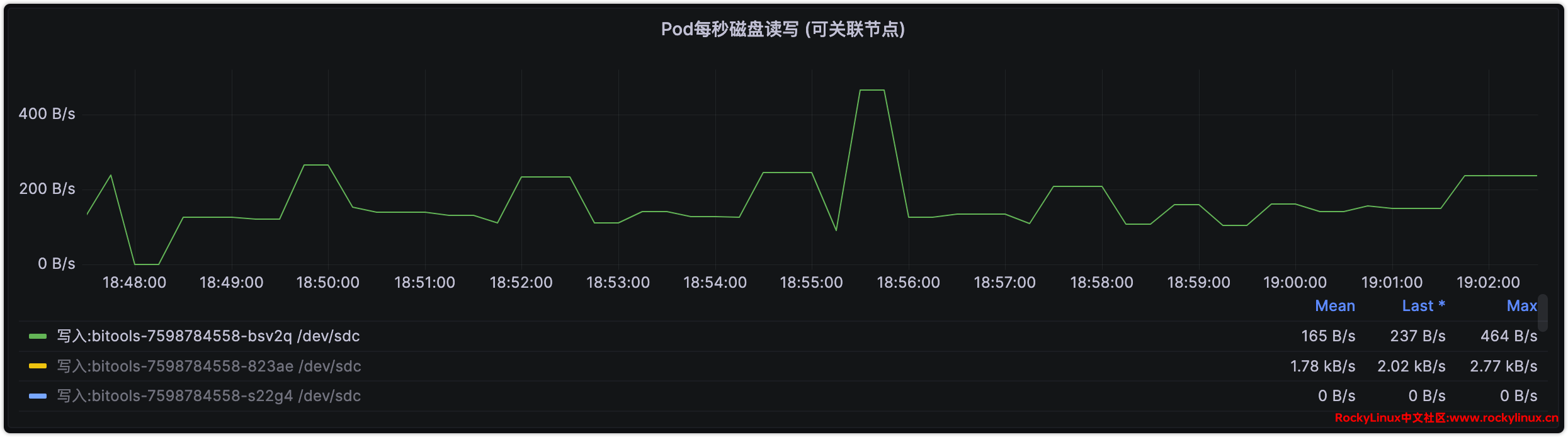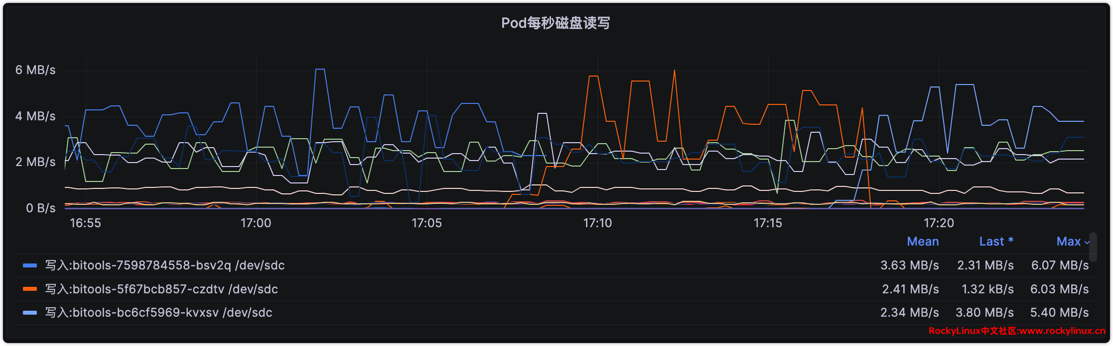 最近发现 CEPH 的磁盘写入占用很大,去到 50+MiB/s(如下图所示),对于使用家用 SSD 构建的 CEPH 来说,无疑是一场灾难,磁盘不用多久就会写报废,为了解决此问题,我们需要通过磁盘 IO 的占用,来反推是哪个服务占用磁盘 IO 高,再从服务入手从根本解决问题。通过查看 PVE 虚拟机磁盘读写 IO,确认磁盘 IO 占用大的为 Kubernetes 节点,所以从 Kubernetes 节点入手。