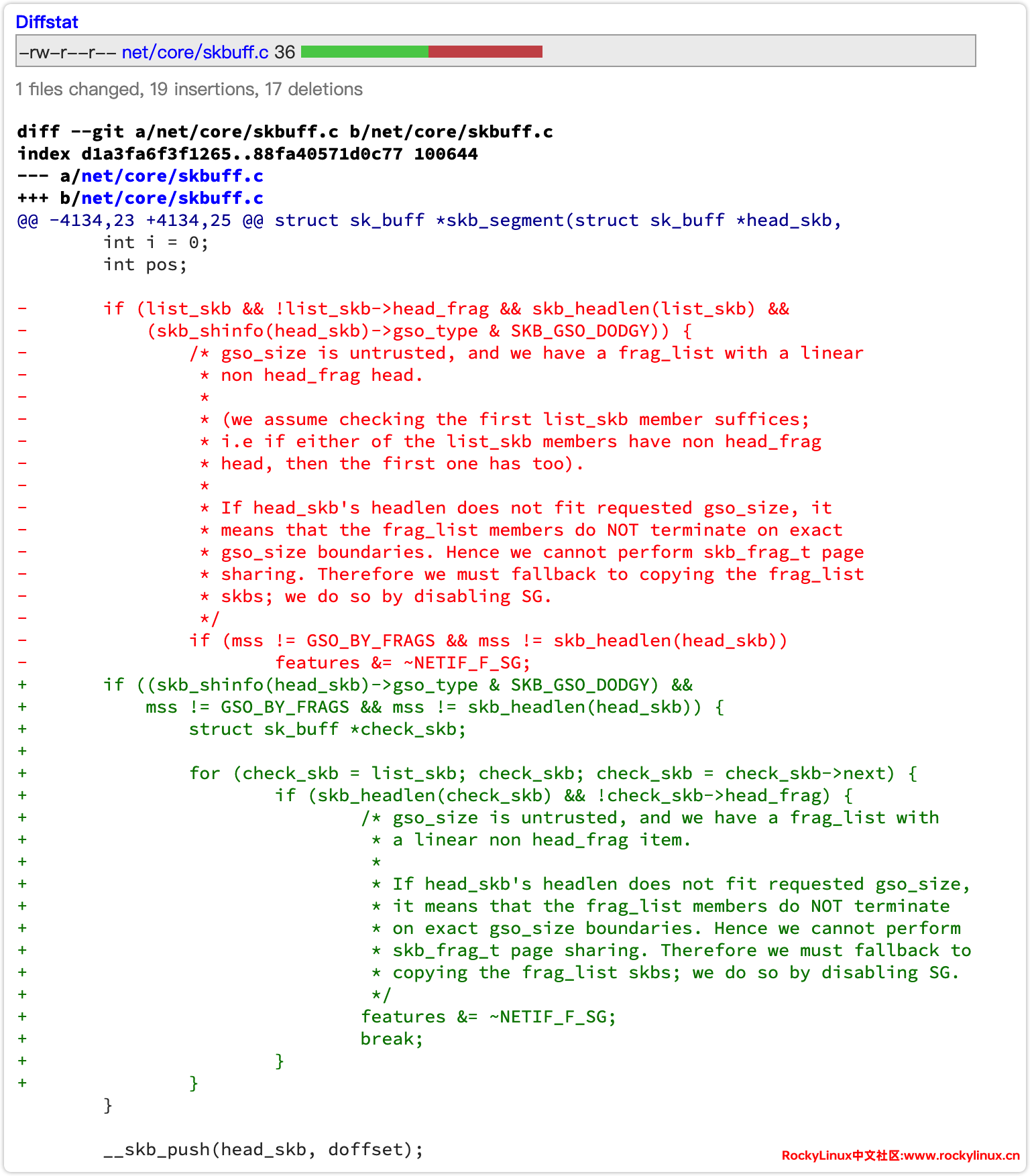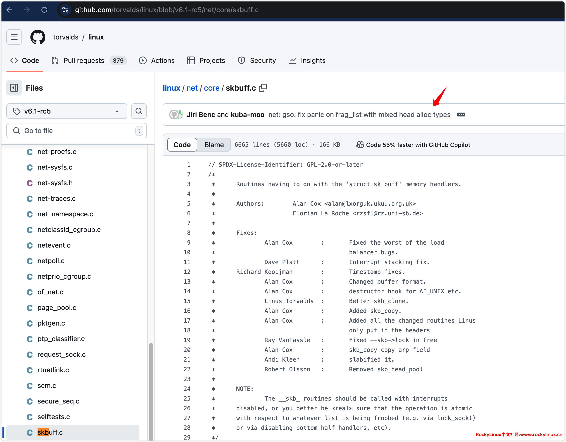 点击对应链接 linux/net/core/skbuff.c at v6.1-rc5 · torvalds/linux · GitHub,可以看到对应变更记录。