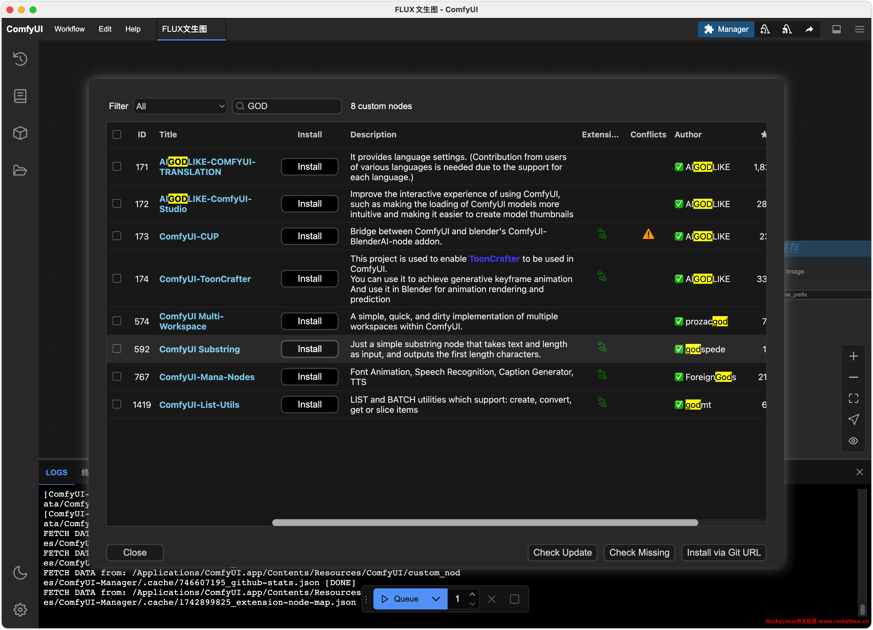 /app/ComfyUI/my_workflows,新版迁移至user/default/workflows。迁移过程中会自动创建新目录并完成数据迁移,无需手动操作。 - 打开网络下载的工作流后,若遇到节点缺失等问题,可直接调出节点安装界面,系统将自动筛选当前工作流所需节点,支持一键快捷安装。