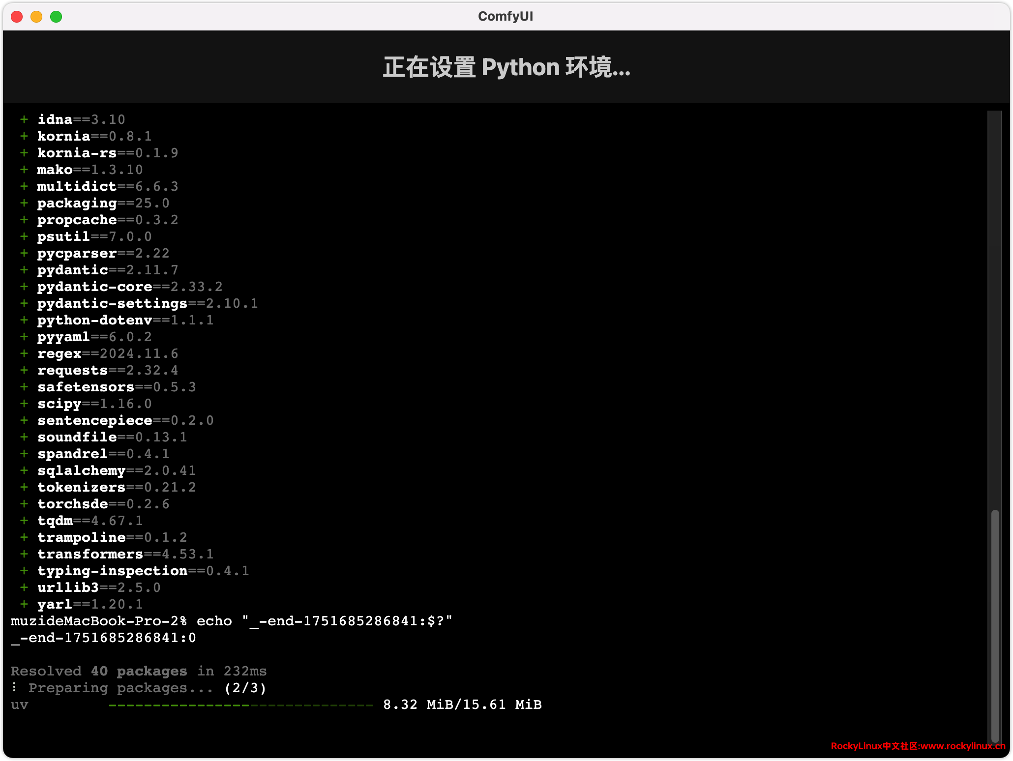 macOS ComfyUI 的 Python 虚拟环境位于安装目录的 .venv 目录下,所以如果您需要基于对应 Python 虚拟环境手动安装一些包,比如:pip install insightface==0.7.3,可以进入对应目录,激活 Python 虚拟环境,再进行安装。