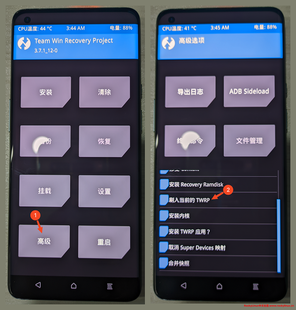 再点击“高级” --选择“刷入当前的 TWRP”。
