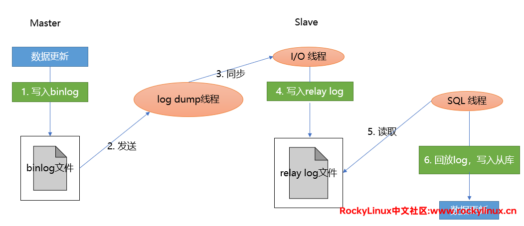 从服务器为了与主服务器 保持一致,要从主服务器读取 binlog 的内容,并且把读取到的信息写入本地的日志文件中(该文件通常位于 datadir 中),这个从服务器上的本地日志文件就称为 中继日志。然后,从服务器读取中继日志的内容并根据中继日志的内容对从服务器上的数据进行更新,完成主从服务器的数据同步。