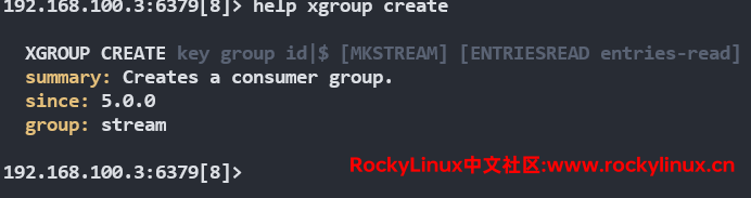 192.168.100.3:6379[8]> xgroup create name:stream groupa 0