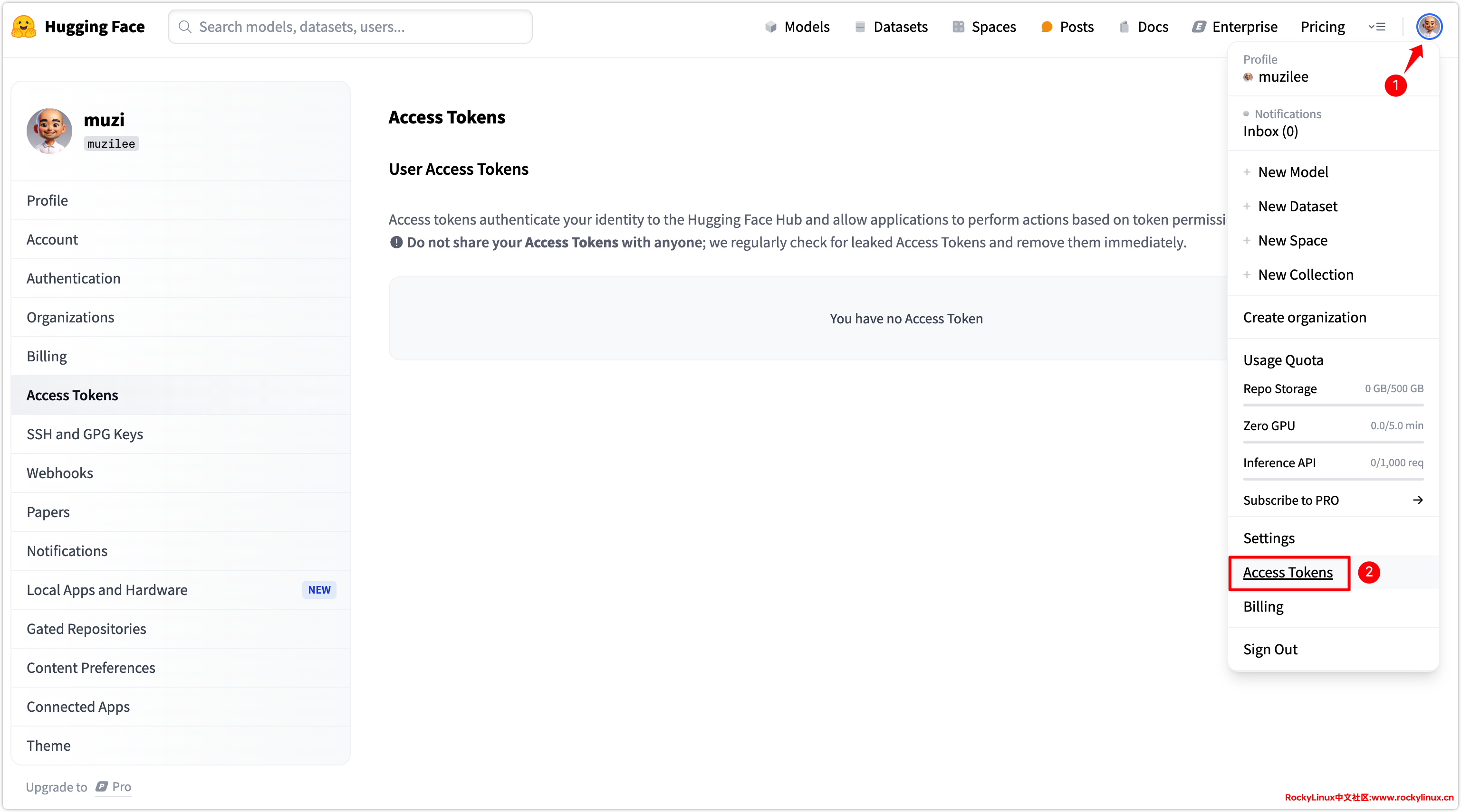 注册过程略,相对比较简单邮箱注册、激活即可。主要在于拉取大模型的时候,需要通过 SSH 或者 Token 方式拉取(和 GitHub 一样),所以这里以设置 Token 为例。