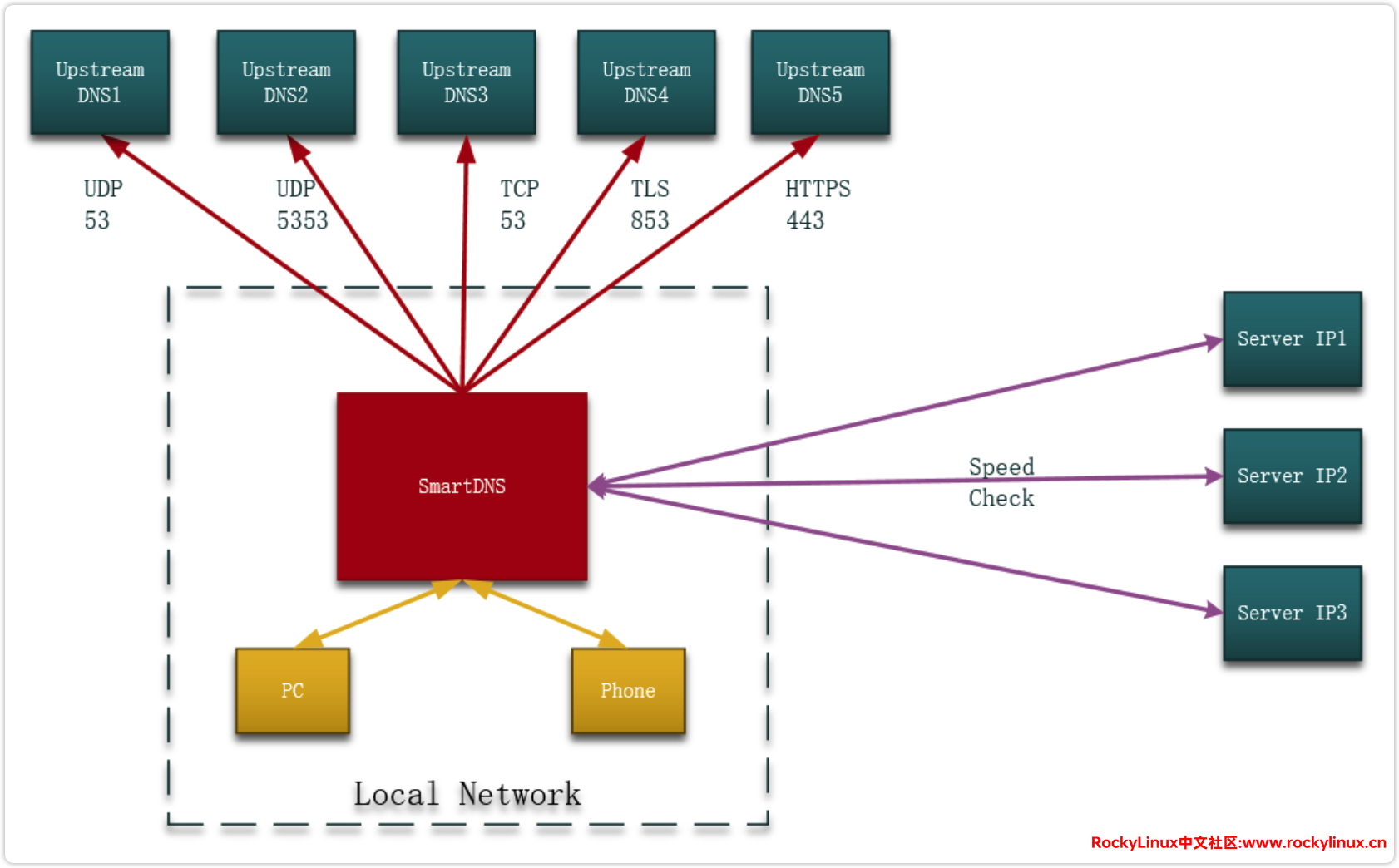 - 速度快:SmartDNS 通过并发查询多个 DNS 服务器,从中选择响应最快的结果,大大提高了 DNS 解析速度。