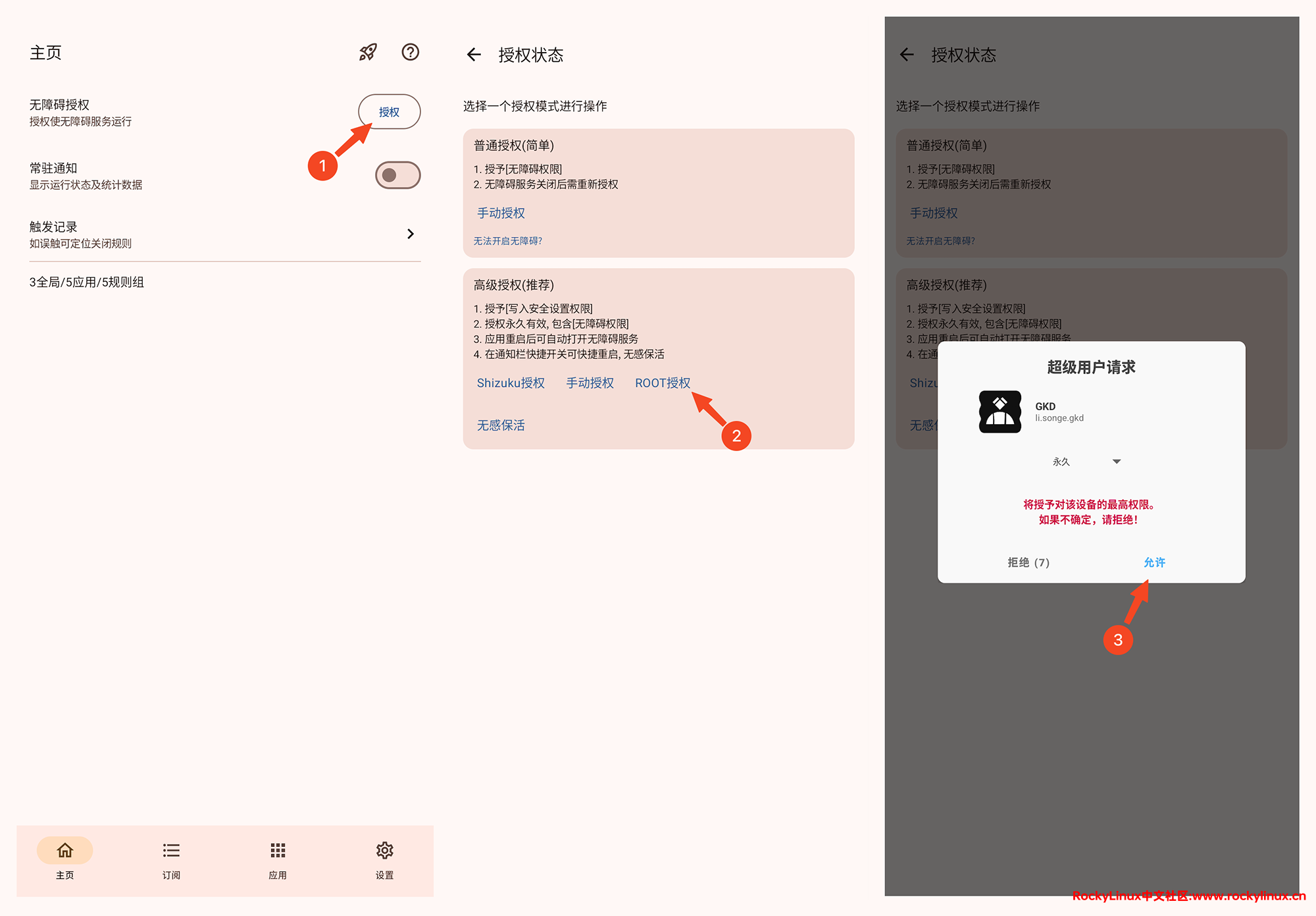 因为需要 root 授权,如果您之前使用了 Shamiko 白名单模式,需要在 Magisk 中将 Shamiko 禁用,重启手机。再将 GKD 设置 root 授权,再在 Magisk 中将 Shamiko 禁用,重启手机。