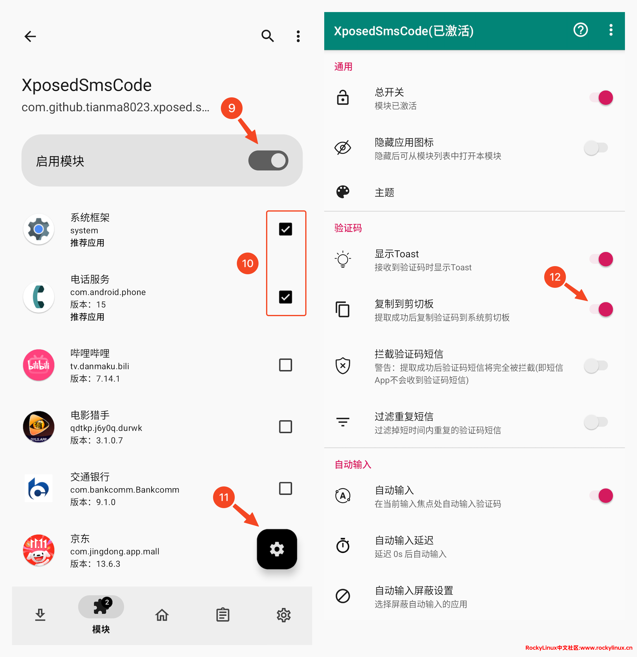 - 安装 XposedSmsCode_v2.5.1_240105_r.apk App,在 LSPosed 中激活此模块,并重启手机。