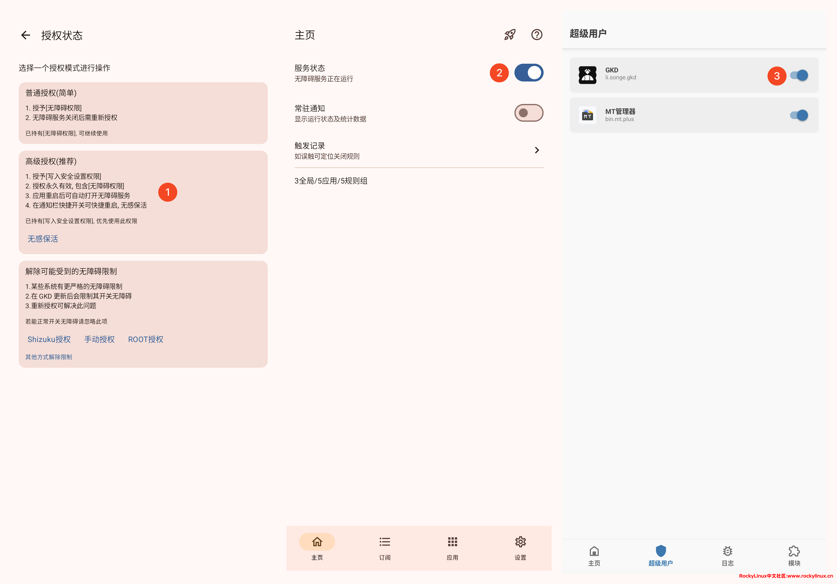 Magisk -- 超级用户 -- GKD 开启成功(显示如下图 ID 3 所示)。