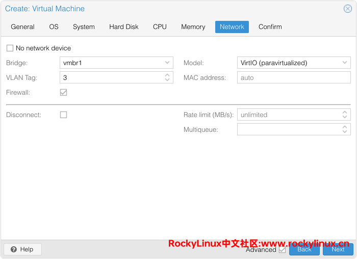 7) 因为木子这里配置了VLAN,所以会打上Tag标记,一般不需要设置。模式:VirtIO 。