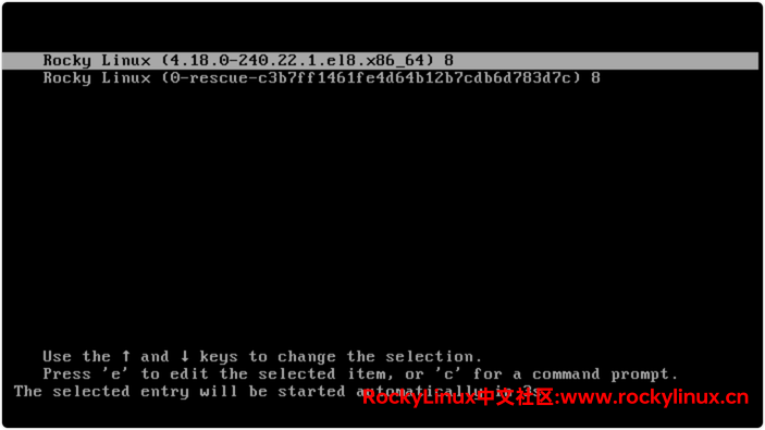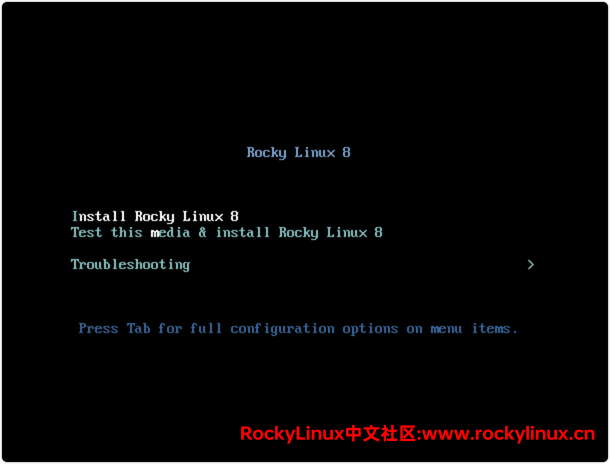 9) 启动虚拟机,开始安装Rocky Linux,选择:Install Rocky Linux 8。