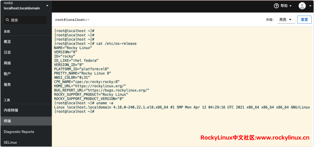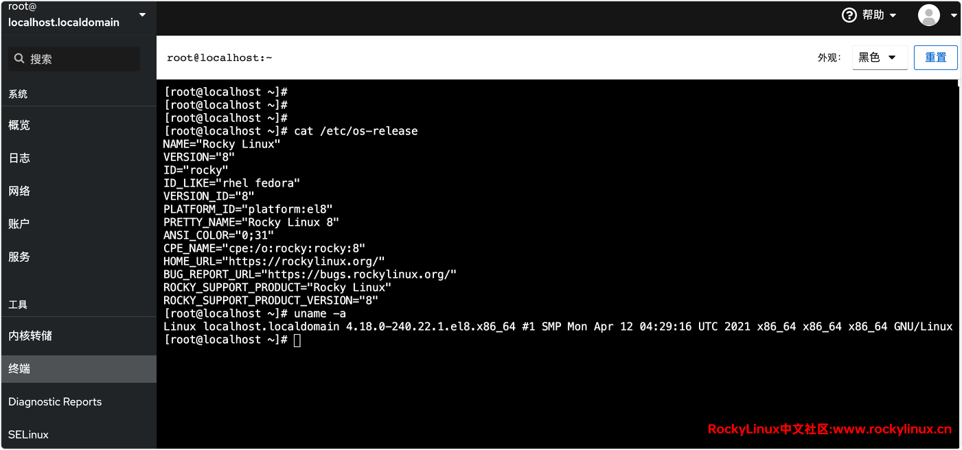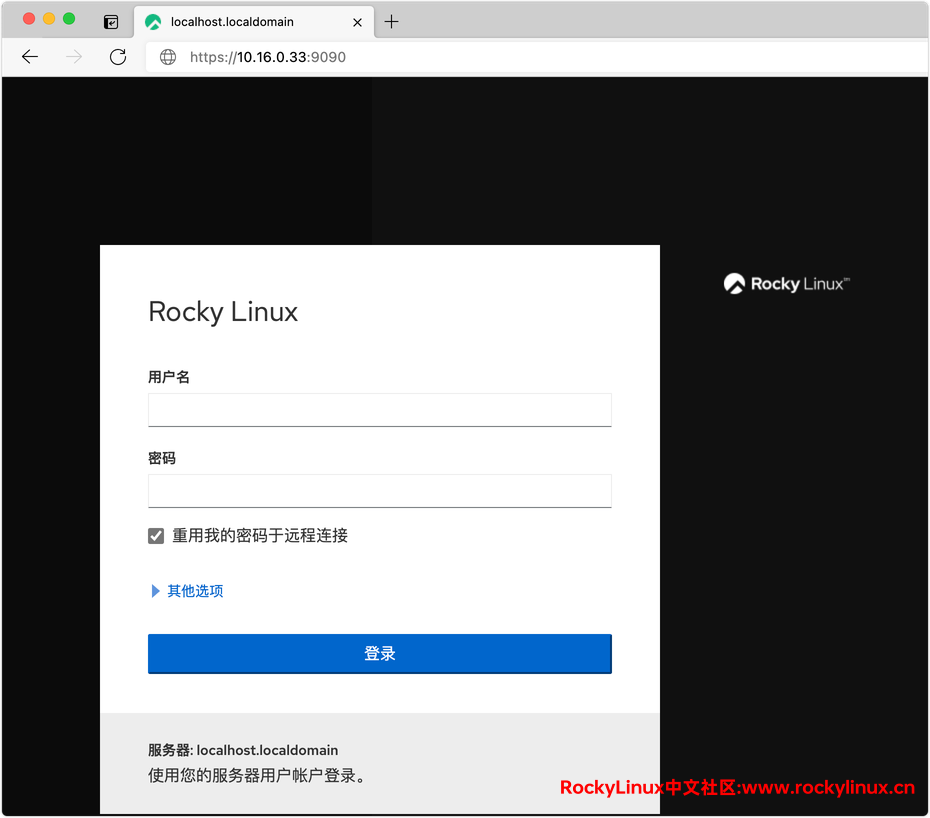 在 CentOS 8 中采用cockpit服务可以打开Web管理控制台,Rocky Linux 也是可以的,它不需要单独安装,默认已经集成,只需要启动对应服务即可。